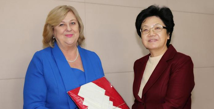Li Bin, minister of the National Health and Family Planning Commission (NHFPC) met with Lithuanian health minister Rimant? ?ala?evi?iūt? in Beijing on Jan 11. Both sides exchanged ideas on Sino-Lithuanian health cooperation.