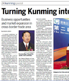 While Yunnan province gets itself ready to be the business and trade gateway to South and Southeast Asian countries, its capital, Kunming, expects to play a major role as a hub for all that activity, the Party chief has said.