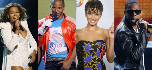 Top black performers paid high tribute to fallen pop star Michael Jackson at Sunday's BET Awards where his sister Janet Jackson and father Joe Jackson made their first public appearances since the singer's death.