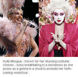 Kylie Minogue - known for her stunning costume choices - looks breathtaking in a red kimono as she poses as a geisha in a shoot to promote her forthcoming world tour.