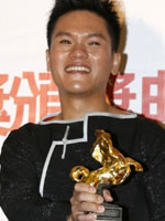 Chiang Su-ming poses with his best newcomer award for "Hopscotch" at the 45th Golden Horse Awards in Taichung December 6, 2008. |