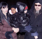 Angelina Jolie, Zahara Jolie-Pitt,Shiloh Joile-Pitt and Brad Pitt on pier 66 on the set of Salt in Manhattan on December 29, 2009 in NYC.