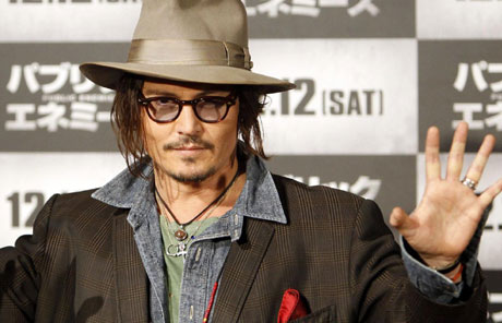 Johnny Depp poses at a photo session prior to a news conference to promote his movie "Public Enemies " in Tokyo.