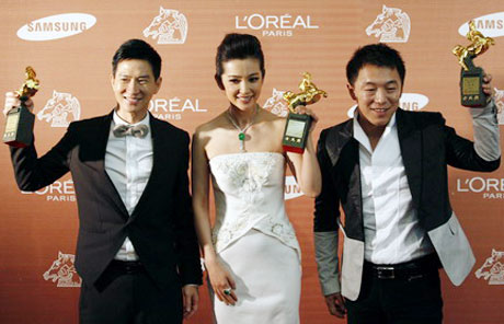 Chinese mainland actress Li Bingbing poses with her best leading actress award for "The Message" at the 46th Golden Horse Awards in Banciao, Taipei County, November 28, 2009.