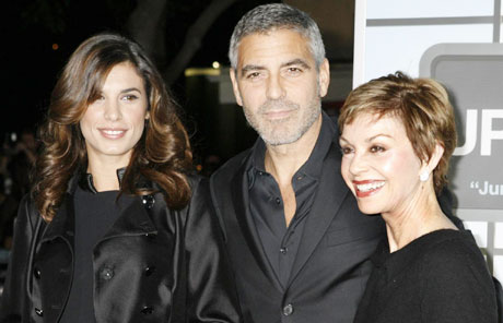 George Clooney's girlfriend Elisabetta Canalis poses with Clooney, star of the film "Up In The Air" and his mother Nina Clooney at the film's premiere in L.A.