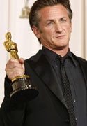 Sean Penn poses with his best actor Oscar at the Academy Awards in Hollywood