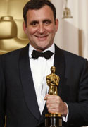 Danny Boyle kisses his best director Oscar for his work on the film "Slumdog Millionaire," backstage at the 81st Academy Awards in Hollywood, California, February 22, 2009. |