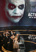 The late Heath Ledger's picture is displayed after he wins the Oscar for best supporting actor