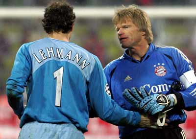 Oliver Kahn (R) goalkeeper and team captain of Bayern