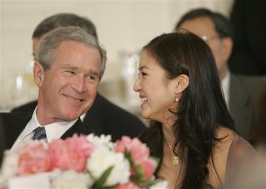 "Your baby girl was sitting next to President Bush," she told them. Kwan's