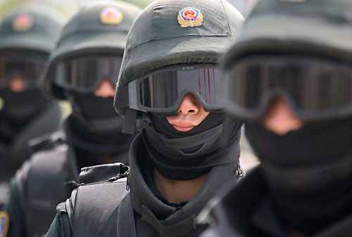 Masked members of a Chinese police SWAT