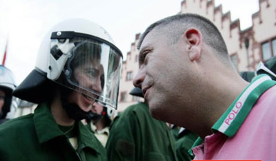 Some 200 frantic fans from England clashed in a Frankfurt financial street