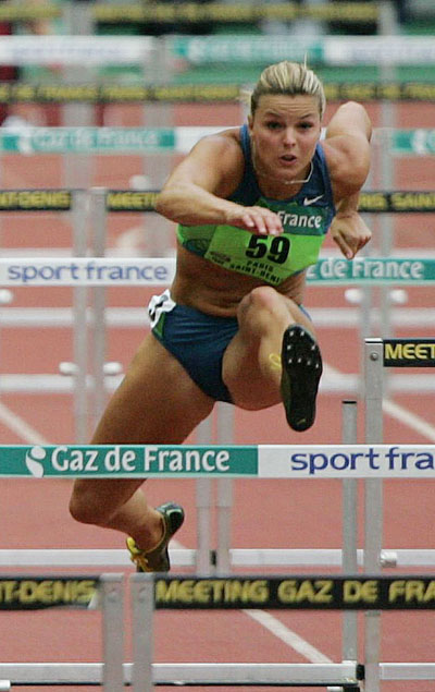 Sweden's Susanna Kallur runs to win the women's 100m Hurdles at the Paris Golden League meeting at the Stade de France in Saint Denis near Paris July 8, 2006.[Reuters]