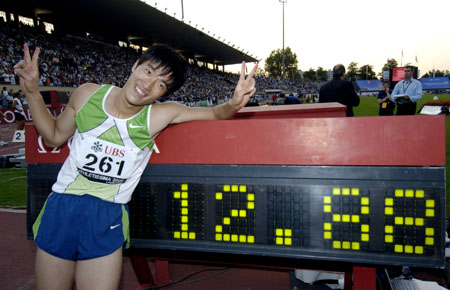 athletics meeting in Lausanne July 11, 2006. Liu won the race in a world