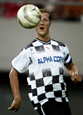 Formula One driver Michael Schumacher of Germany controls the ball during a