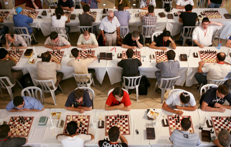 Players compete in the World Speed Chess championships in Rishon Letzion, near Tel Aviv September 6, 2006. [Reuters]