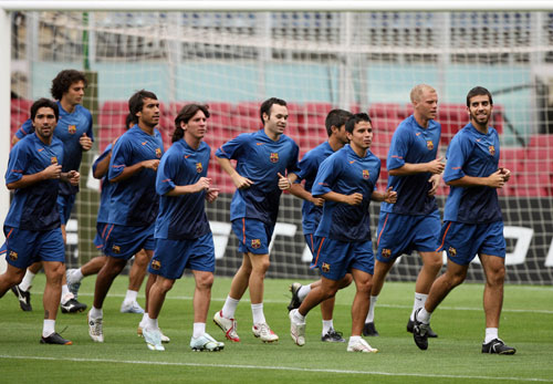 Barcelona's training session (Reuters) Updated: 2006-09-12 09:39  Barcelona's players warm up during a training session at Nou