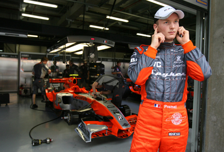 Spyker Formula One driver Alex Premat of France keeps his fingers in his ears
