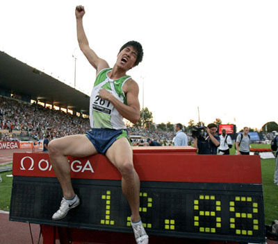 Liu holds the 110-metre hurdle world record with a time of 12.88 seconds