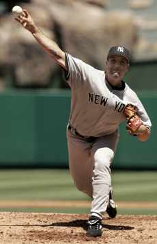 Cory Lidle throws a pitch against the Los Angeles Angels during the first