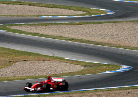 Ferrari Formula One driver Michael Schumacher drives during a training session at the Jerez racetrack, southern Spain, October 12, 2006. [Reuters]