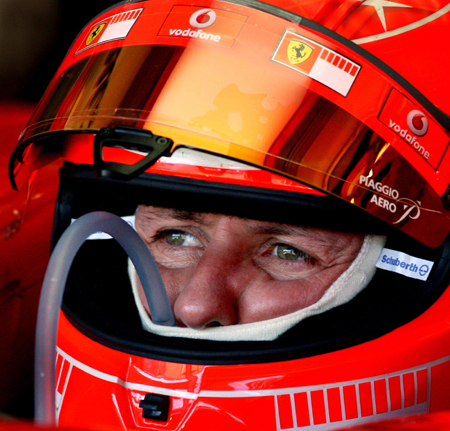 Ferrari Formula One driver Michael Schumacher drinks during a training session at the Jerez racetrack, southern Spain, October 12, 2006.[Reuters]