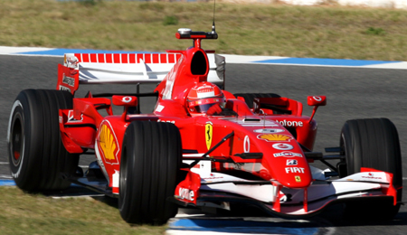 Ferrari Formula One driver Michael Schumacher drives during a training session at the Jerez racetrack, southern Spain, October 12, 2006. [Reuters]