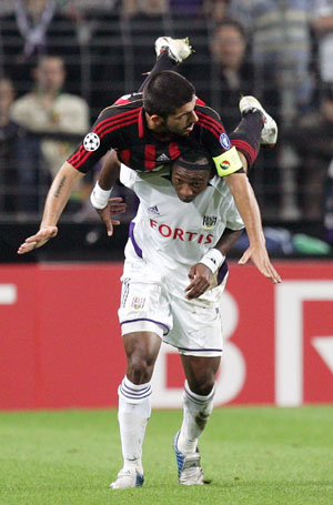 (Reuters) Updated: 2006-10-18 09:50  AC Milan's Gennaro Gattuso falls over Anderlecht's Mohamed