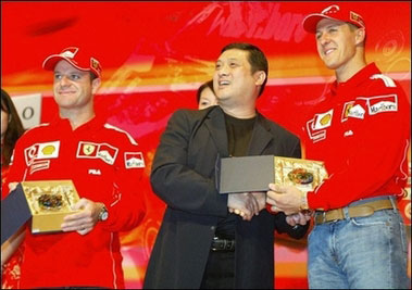 Michael Schumacher (R) and Rubens Barrichello (2nd L). Yu is being