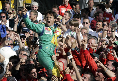 Ferrari Formula One driver Felipe Massa of Brazil celebrates with the Ferrari