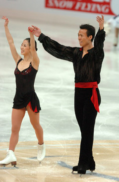 Figure skating: Chinese pair lead after short program(Xinhua)Updated: 2006-11-10 14:21 Chinese Pair Shen/Zhao list top at Grand Prix short program. World champions Shen Xue/Zhao Hongbo from China stood first in the pairs short program as the ISU Grand Prix of Figure Skating Series China leg started Thursday in Nanjing Olympic Sports Center Gymnasium.