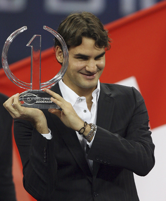 Federer presented yearend world No. 1 trophy(Reuters)Updated: 2006-11-14 09:11
