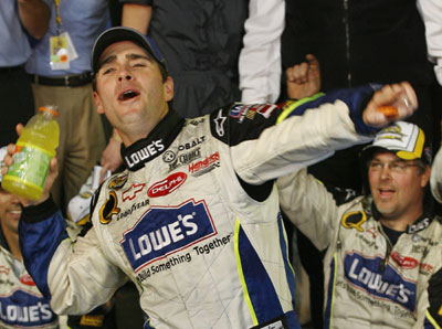 The perpetual points leader for the past three regular seasons only to collapse once the Chase began, Johnson finally put an entire year together, wrapping it up with a 9th-place finish at Homestead-Miami Speedway. It handed him his first NASCAR title by an 51-point lead over Matt Kenseth. "Yeah, it's incredible," said Johnson, in his typically low-key tone. "These guys are incredible. This team has really come into its own in the last year." Greg Biffle won the Ford 400 for the third straight season, beating rookies Martin Truex Jr. and Denny Hamlin to the finish line. Kasey Kahne was fourth and Kevin Harvick rounded out the top five. Kenseth was sixth. Juan Pablo Montoya, making the first Nextel Cup start of his budding NASCAR career, ran as high as 13th, but his race ended in a fiery wreck 15 laps from the finish. |