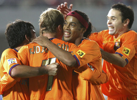 Gudjohnsen pair puts Barcelona top(Soccer365)Updated: 2006-11-20 09:10 A goal in each half from Eidur Gudjohnsen and late strikes from Andres Iniesta and Santi Ezquerro gave Barcelona a deserved 4-1 victory at Mallorca on Sunday and moved the Catalan side back to the top of the Primera Liga.