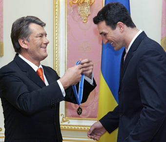 Viktor Yushchenko for his achievements in sports in Kiev November 22, 2006.