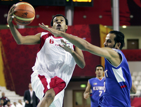 (R) of Kuwait defends during their men's Group D first round basketball match at