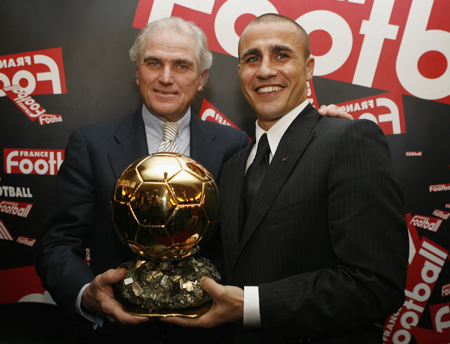 Cannavaro holding his Ballon d'Or (Golden Ball) award as European Footballer of