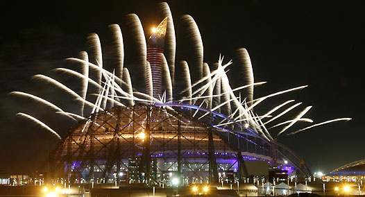 Khalifa Stadium after the lighting of the torch to start the Asian Games
