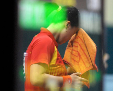 The "Grand Slam" paddler, winner of Olympics, world championships and World Cup, lost it 6-11, 11-8, 11-4, 2-11, 7-11, 11-7, 11-6. "I've no regrets, however, and I'm gratified to have won the women's team championship," said a sobbed Wang who tried hard to keep herself calm down but still had to cut answers short while facing press after the defeat. In the seventh set, Wang wasted a flying start of 5-0, put herself going under pressure, and was overtaken the lead 5-8, 6-10 before Tie forced a off-the-bound return from Wang with a lucky receiving just keeping her playing after kissing the net. "Wang has been too nervous during the match, and I just played beyond my level," commented Tie, a Chinese-born Hong Kong veteran who will turn 29 years old in two weeks. "I think Wang has put too much pressure on herself, and she failed to stick to her tactics which helped her pull back two sets halfway," echoed Tie's coach Li Huifen. "For sure it's a better performance from Tie, who never beat Wang before this match. She scored some extraordinary play which she might not dare to do," she added. "I'm so glad she finally woke up," sang a happy Li. Wang did not find her rhythm until the fourth set which she just let go two points, and took the fifth 11-7. But the scene failed to be repeated in the following sets. Also the 28-year-old player has obviously beaten by the tight schedule, according to which she had played four matches Tuesday.