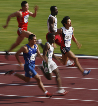 during the semifinals of the men's 100m race at the 15th Asian Games in Doha