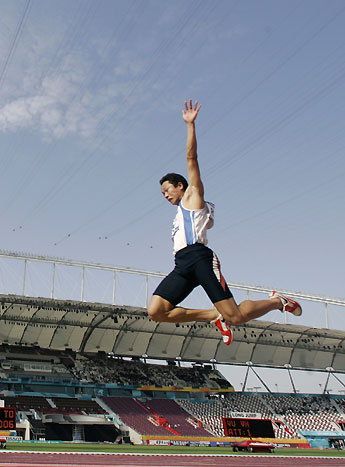 Vietnam's Van Huyen Vu competes in the long jump event of the men's decathlon at the 15th Asian Games in Doha December 10, 2006. [Reuters]