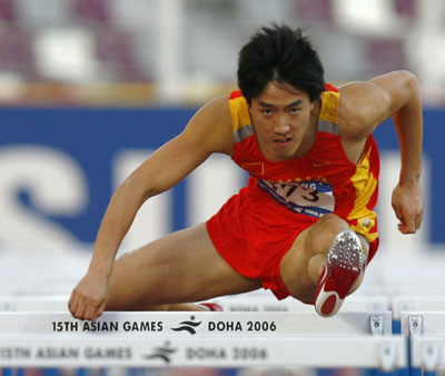 hurdles final during the 15th Asian Games in Doha December 12, 2006. Liu took
