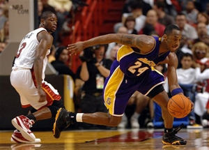 He wasn't watching on Monday — because he was the one providing the excitement. Wade dismissed all pregame suggestions that his Christmas would be a 1-on-1 showdown against Kobe Bryant, then turned the matchup of two of the NBA's best scorers into a one-sided battle. He had 40 points and 11 assists, leading Miami to a 101-85 win over the Los Angeles Lakers — the third straight Christmas win for the Heat in the series. "Makes it great, man, makes it great," Wade said. "To be playing on Christmas is great. ... And we can go home and continue enjoying Christmas Day knowing that you played an unbelievable game, knowing that your team played well and that you got a win. Ain't too many things better than that." Wade made 12 of 20 shots from the floor, 15 of 16 from the line, and got a huge ovation from another sellout Miami crowd when leaving with 57.9 seconds remaining. The praise kept coming postgame, too. "An outrageous night," Heat coach Pat Riley said. "Flash, man," Heat forward Dorell Wright said. "That boy's got something." "Pretty entertaining to watch," added Heat center Alonzo Mourning. "He's a special player." Meanwhile, Bryant — who entered the game as the sixth-leading scorer in the league at 27.8 points — never got rolling. He missed his first six shots, finished 4-of-17 from the floor and with 16 points, one over his season-low. "You have to let it go," Bryant said. "It was disappointing, but we have two more games on this trip. It's a long season. We are 18-10. Now it is time to move on." Jason Kapono had 11 points and Wright added 10 for the Heat, who won for the