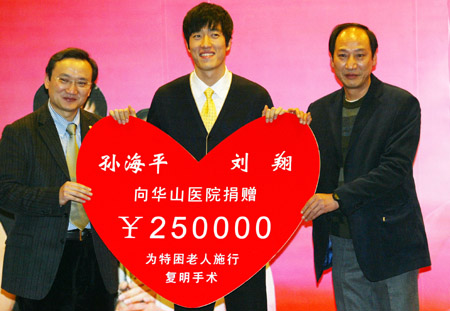 Hurdler Liu Xiang donate to cataract people(Xinhua)Updated: 2006-12-26 09:22