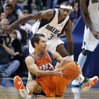 Steve Nash as he tries to pass in the third quarter of Dallas' 101-99 win over