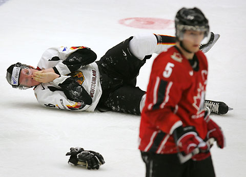Canada's Kristopher Letang (R) skates by at the 2007 IIHF World Junior