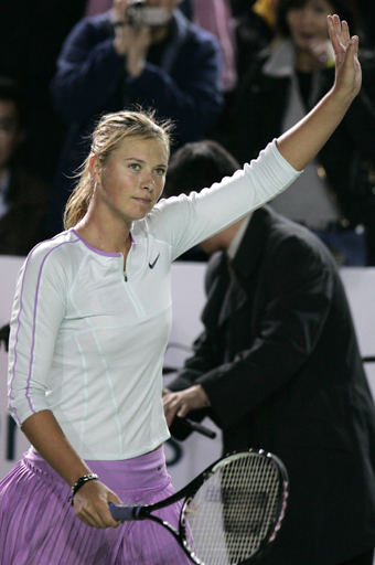 Maria Sharapova of Russia waves to the audience after defeating Yan Zi of