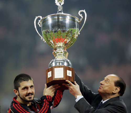 Milan's captain Gattuso (L) and boss