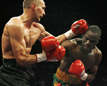 Roman Karmazin of Russia (L) lands a left to the head of James Toney