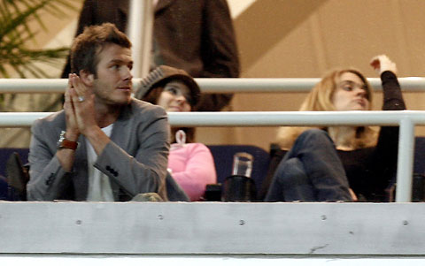 David Beckham watches his team's Spanish first division soccer match against Zaragoza at Santiago Bernabeu stadium in Madrid January 14, 2007. Real coach Fabio Capello had said Beckham would not have the chance to play for the team till his move. [Reuters]